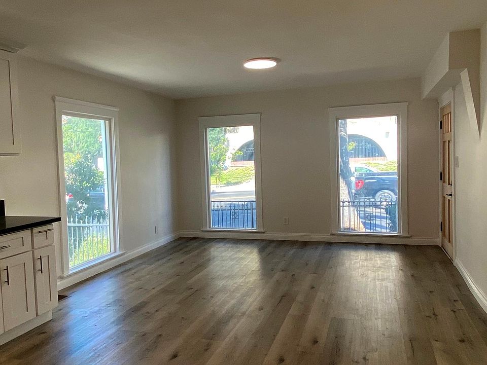 Renovated and upgraded apartment in 4 unit building. Spacious light filled open floor plan with floor to ceiling windows.Brand new central AC and heat. Private laundry. Stainless steel appliances, dishwasher, stone countertop. 2 bedrooms, 1.5 bath. Larger bedroom has walk-in closet. Smaller bedroom perfect for office/ guestroom and has a large closet. Gated property. Parking for 2 cars in rear lot. Walking distance to Griffith Park, Hollywood Blvd. shops, restaurants and grocery stores. 12 month lease. Non-smoking property. Owner pays water, trash, sewer. Pets ok.