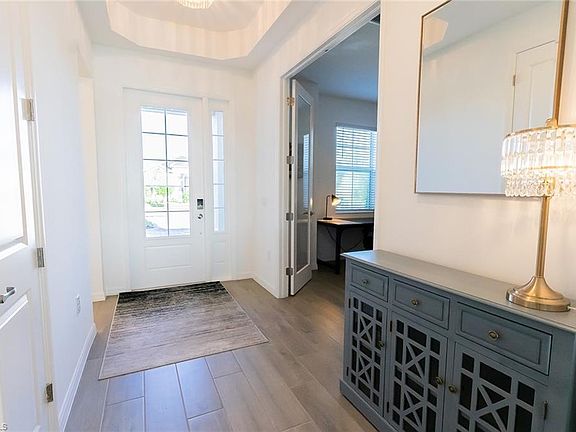 Step into a golfer's paradise and experience the perfect blend of elegance and comfort in this expansive 1,850 sq. ft. retreat. Designed for both relaxation and entertainment, this stunning home features 2 bedrooms, 2.5 baths, and a versatile den ideal for a home office or guest space. Soaring high ceilings and elegant tile floors create a bright, open ambiance, while the luxurious Owner's Suite boasts a tray ceiling, private lanai access, and a spa-like bath. The stylish white kitchen is a chef's dream, complete with a spacious pantry and ample cabinet storage. A dedicated laundry room adds convenience, while the 2-car garage offers plenty of space for vehicles and storage. Step outside to your private outdoor oasis, where a heated pool & spa await, perfect for year-round enjoyment. Entertain effortlessly with an outdoor TV, grill, and a convenient cabana bath. As a resident of The Victoria, you'll enjoy an Exclusive Golf Membership included with your rental, granting you access to world-class fairways. The National Golf & Country Club offers an array of top-tier amenities, including a resort-style pool, tiki bar, gym, sauna, day spa, private yoga & aerobics room, and more. Sports enthusiasts will love the 8 tennis courts and 6 pickleball courts, especially with the exciting new additions of a clubhouse with two restaurants and additional 3 satellite pools around the community. Ave Maria ~ Once you get here, you "get it"