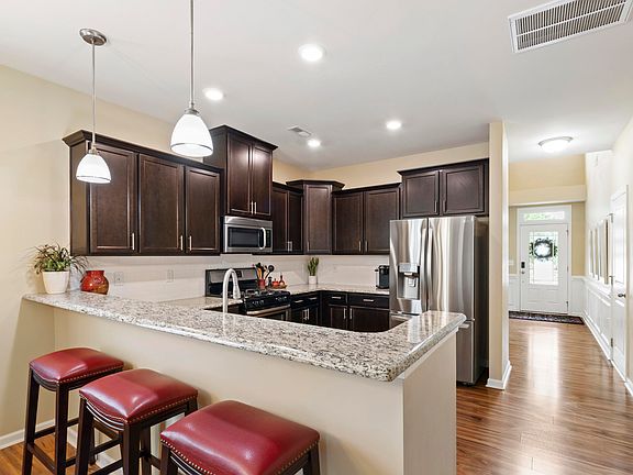 Welcome to this beautifully maintained 2-story townhome, where modern updates, thoughtful details, and convenience come together in perfect harmony. Offering 3 bedrooms, 2.5 bathrooms, and a 1-car garage, this home has been meticulously cared for and thoughtfully upgraded, making it truly move-in ready. The first floor is designed for everyday comfort and entertaining alike. Just off the entry, you'll find a convenient half bath and laundry area with added cabinetry and shelving for extra function. The kitchen features granite countertops, stainless steel appliances, and generous storage, while custom floor-to-ceiling cabinetry and bookshelves between the dining and living room create a beautiful focal point with both style and utility. The spacious first-floor primary suite feels like a true retreat, featuring a bright bedroom, a spa-like bath with double vanity and oversized glass shower, and a massive walk-in closet upgraded with a custom closet system—perfect for the fashion lover or anyone seeking extra organization and space. Upstairs, two additional bedrooms share a Jack-and-Jill bathroom, while the large loft offers endless flexibility as a media room, playroom, or home office. Outdoor living is just as inviting. The screened-in porch opens onto a 6' x 10' paver patio, complete with a charming landscaping half-wall and additional fencing panels for extra privacy—making it the perfect spot to relax or entertain. Thoughtful updates like garage shelving add even more storage, while the home's tankless water heater and new HVAC system provide peace of mind and efficiency. Beyond the home itself, the community offers a dog park and swimming pool! And the location couldn't be more convenient. Just minutes from RDU Airport, Research Triangle Park, Brier Creek Commons, and I-40/I-540, you'll enjoy easy access to work, travel, shopping, and dining. Whether you're a frequent traveler, RTP professional, or simply want to be close to everything, this home delivers. Immaculate, low-maintenance, and stylishly appointed, this townhome is the perfect place to call home from the moment you move in.