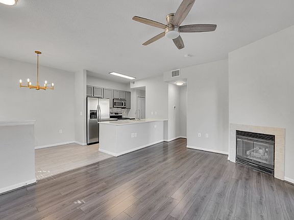Welcome to this beautiful condo! As you enter, you'll be greeted by a bright and open living room featuring a cozy fireplace, ceiling fan, and access to the private patioperfect for relaxing or entertaining. Adjacent to the living room is the elegant dining area and an updated kitchen equipped with modern appliances, including a dishwasher, disposal, electric stove, ice maker, microwave, and refrigerator. A convenient laundry room with a washer and dryer is located just past the kitchen.