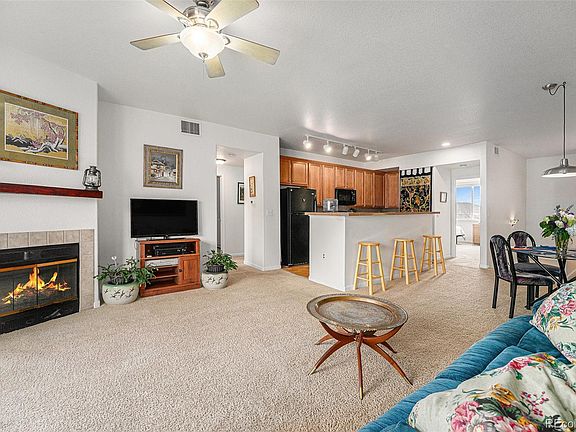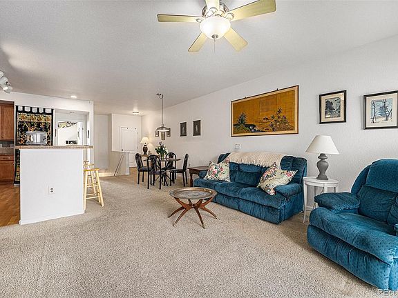 This well-located condo is bright and sunny, with an open floor plan and mountain views from the primary bedroom. The unit has a great layout, featuring a living room that opens to a private balcony, a spacious kitchen with pantry, and plenty of room for a dining table. The primary is generously sized and has a walk-in closet and en-suite bath, and the second bedroom offers two closets. A garage will keep your car free of snow and safe from hail, while offering additional storage space. Low HOA fees include a pool and spa, as well as snow removal! Despite proximity to Kipling, this unit has no road noise – you'll love the convenience of quick access to a main thoroughfare, while enjoying the quiet community of Skyline Estates.