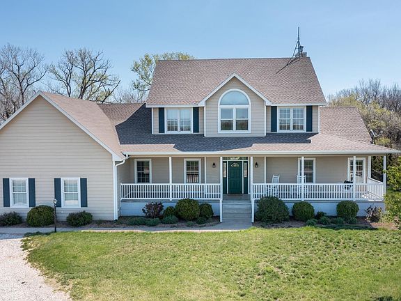 Well cared for 6-bedroom, 5-bathroom home on 4.2 acres of country sunsets, trails winding through mature trees, a meandering creek, and restful quiet all on your own property. Enjoy wildlife with your morning coffee from your screened-in deck with low maintenance composite decking overlooking the creek behind your wrought-iron fenced back yard with a sprinkler system. Extras in this country home just a few miles south of Newton include new class IV roof in 2023, smartboard siding, new carpet and refinished oak floors, whole house backup propane generator, water softener, tankless water heater, oversized garage, large laundry room with cabinets, counter, and sink, ample kitchen with pantry and built-in buffet and Anderson windows. Main floor features plenty of room to entertain in huge living room and formal dining room along large mudroom and the master suite. Full finished veiw-out basement has a second kitchen, another bedroom with ensuite bathroom, home theater, and safe room. Country homes like this don't come around very often, so come and take a look.