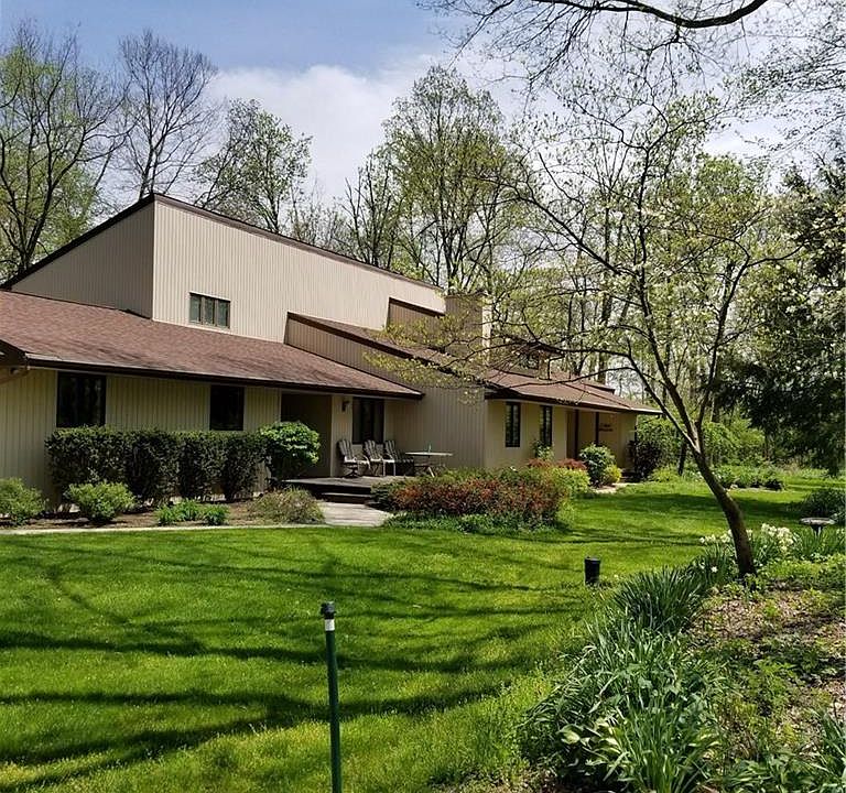 5.21 fully wooded land in private, park-like setting. One-of-a-kind opportunity. Private lane leads to an oasis of privacy engulfed in majestic landscaping & wooded atmosphere. 2-Sty home was built in 1979 & will impress with the degree of engineering forethought & energy saving features. 4 Bed, 3.5 bath has so much more to offer than other homes on the market. Included with the home are 3 FP's, a sitting room off the master bedroom,huge walk-in closets, fabulous spa room connected to the master bedroom, finished lower level with stone FP, wine cellar, dedicated workroom with pegboard walls, & a walk-up entrance to the garage. In addition,there is another 2.5 oversized detached garage. Huge screened gazebo, decks & great outside living. There are over 600 black walnut trees which have veneer quality wood & in 15 yrs will provide current owner with a handsome income. The attached 5 acre wooded lot is sold separarately.. GREAT BUILDING LOT. CALL AGENT
