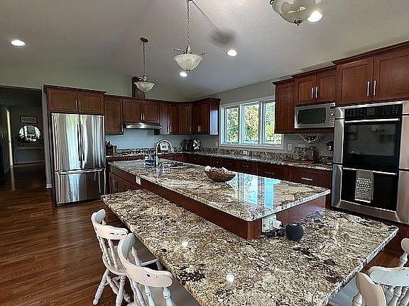 To complete the property there is an oversized detached heated garage AND a large pole shed 36 x 122 feet long with a large mezzanine, full concrete floors and a 34 x 36 insulated/heated workshop. The shed also offers space for an office or man cave with a functioning bathroom!