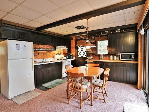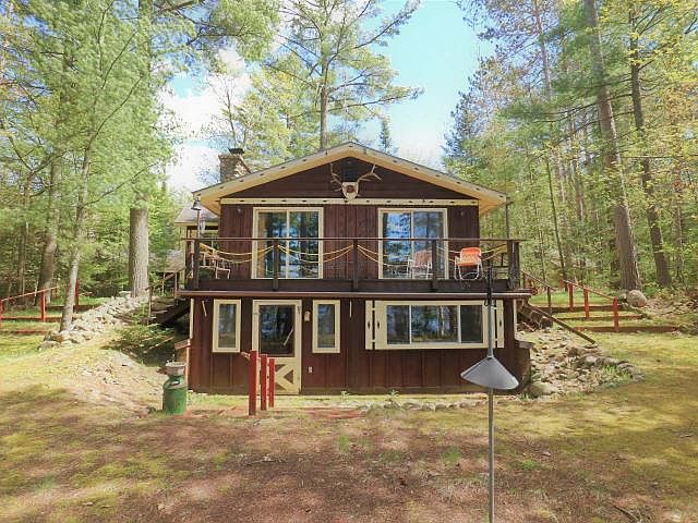 KILDARE LAKE HOME - Affordable lake living has arrived. Sitting on the quiet shores of 54-acre Kildare Lake is this 1,608 square foot 3 BR & 2 BA home. Rarely does one find a home with 4 lake facing patio doors. There is an open sun deck on the main level and on the lower level there is an enclosed porch to keep you protected from the elements while still enjoying the views of the beautiful Northwoods. The open concept main floor boast a charming red brick fireplace in the living room, kitchen, 2 bedrooms and one bathroom. The lower level has another brick fireplace in the family room, 1 bedroom, 1 bathroom, laundry area, and storage room. This neatly landscaped fully furnished home is rounded out with a 2-car detached garage with extra storage, a shed, pier and 2 rowboats. Located just outside of Land O Lakes & Eagle River, you get privacy without the crowds at this adorable lake escape.