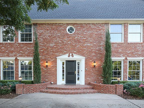 This reimagined colonial revival home showcases a complete custom remodel with timeless design at its core. Hand selected finishes blend modern comfort with classic elegance, offering a home that feels both current and enduring. High-end lighting and detailed trim work elevate every room. Offering 4 bedrooms and 4.5 baths, this home allows you to entertain with ease featuring 2 spacious living spaces, a formal dining room, a chef's kitchen, a large flex office/sunroom, plus an upstairs bonus room. All new kitchen includes a commercial style range top, custom cabinetry, 9 ft marble island, and an eat-in breakfast area. Handsome drop zone in laundry for families on the go. Generous primary suite opens to a private balcony with a spa-like primary bath. Three additional bedrooms and 2 full baths upstairs. Massive bonus room with second staircase offering alternative entrance from the garage. This notable home is situated on a large lot in established Fieldstone neighborhood. Three car garage with additional parking available as you pull through the porte-cochere and along the stately circle drive. Gunite pool is completely enclosed with masonry and iron fencing. Enjoy the beautiful view of mature trees while dining alfresco in your covered patio space. New 42 inch outdoor gas grill. New Class 4 impact rated shingle roof. Jenks schools. Jenks Southeast Elementary.