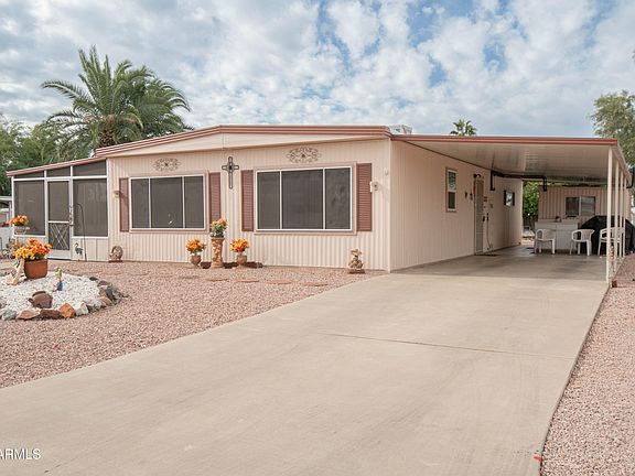 This beautifully maintained 2-bedroom, 2-bath home offers inviting comfort and classic Arizona charm. Additional room off the primary bedroom opens to both the backyard and the Arizona room, creating a seamless blend of indoor and outdoor living perfect for enjoying those gorgeous Arizona winters. Located in a friendly 55+ community, residents can take advantage of neighborhood events, heated pool, shuffleboard, and the welcoming atmosphere that makes this area special. The home sits on an expansive fenced lot with multiple storage buildings, ideal for hobbies or projects.With convenient freeway access and proximity to shopping, dining, this property combines privacy, practicality, and a great sense of community. Whether you're seeking a year-round residence or a seasonal retreat.