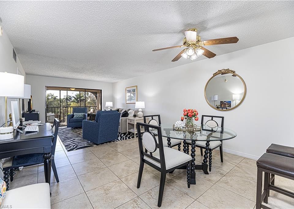 Welcome to this fantastic top-floor condo in The Hammocks! Take advantage of incredible seller financing rates offered at 5.5%. Take in the stunning views of the lake, golf course, and pool area from this 2-bed, 2-bath gem. Situated in East Naples, just off Rattlesnake Hammock Rd, it's conveniently close to Downtown Naples, 5th Ave., and some of the best golf, shopping, and beaches in the area. Enjoy this bright and sunny space with tons of natural light. This elevator building comes with its own dedicated carport space, & plenty of guest parking. Lovely updated kitchen with granite countertops, cherry wood cabinets, pantry, and porcelain tile floors throughout. The open floorplan makes it easy to host gatherings, and the split bedrooms offer a nice balance of privacy. Both baths feature walk-in showers, & the master bedroom comes with a spacious walk-in closet and a separate double vanity. Added convenience includes a newer front-load washer and dryer & Hurricane Impact-Resistant windows. Seller financing is available, making this dream home even more accessible. Don't miss the chance to own a piece of paradise!