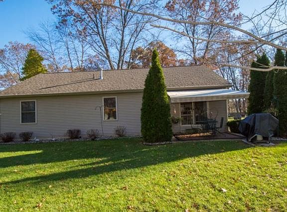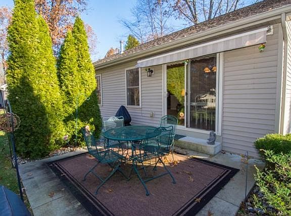A lovely one owner Villa in a community that is conviently located off the old US 20, just east of Ash Road in Brookhill Villas. A very convienent location to travel a short distance to Elkhart, Granger and South Bend. This 1,371 sq/ft, three bedroom home on a full unfinished basement is a must see. The third bedroom with Frensh Doors is off of the Foyer that can be a Den/Home Office. Master Bedroom has a walk in closet, master bath with a tub/shower, Ceiling Fan and a nice sized linen closet. Large living room open to the Causual Dining Room and Kitchen. Off of the Dinings sliding glass doors is a concrete patio, with a view of the wonderfully landscaped rear yard. The patio has a retractable awning, with a remote control that covers the complete patio, that allows you to sit out in any weather. The complete yard has underground Invisible Fence to keep that dog of yours in. The collar and equipment is included for you to let your pet out when you move in. The full basement has an egress window ready for you to finish to fit your needs.