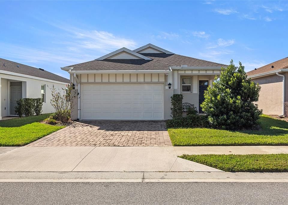 Jennings model 2-bedroom, 2-bath home with a spacious flex room that easily converts to a third bedroom or home office, offering true maintenance-free living. Features include new gutters, stainless-steel kitchen appliances, white shaker cabinetry, and granite countertops in both the kitchen and bathrooms. The primary suite offers a dual vanity, walk-in closet, and tile shower with glass enclosure. Luxury tile flows through the main living spaces and abundant windows flood the interior with natural light. The home also includes a high-end Maytag washer and dryer, a 12 x 25 extended lanai, and a 14 x 10 sunroom with hurricane-rated sliding glass doors for year-round enjoyment. Excellent curb appeal with professional landscaping and a spacious open yard. The HOA covers lawn care, landscape maintenance, irrigation, high-speed fiber internet, and 24/7 gated security. Residents enjoy resort-style amenities including miles of walking and biking trails, championship golf, dog parks, a clubhouse with The Salted Brick restaurant, pools, spa & fitness facilities, and tennis, pickleball, and bocce courts. Minutes from the World Equestrian Center — schedule a tour today to see this one in person.