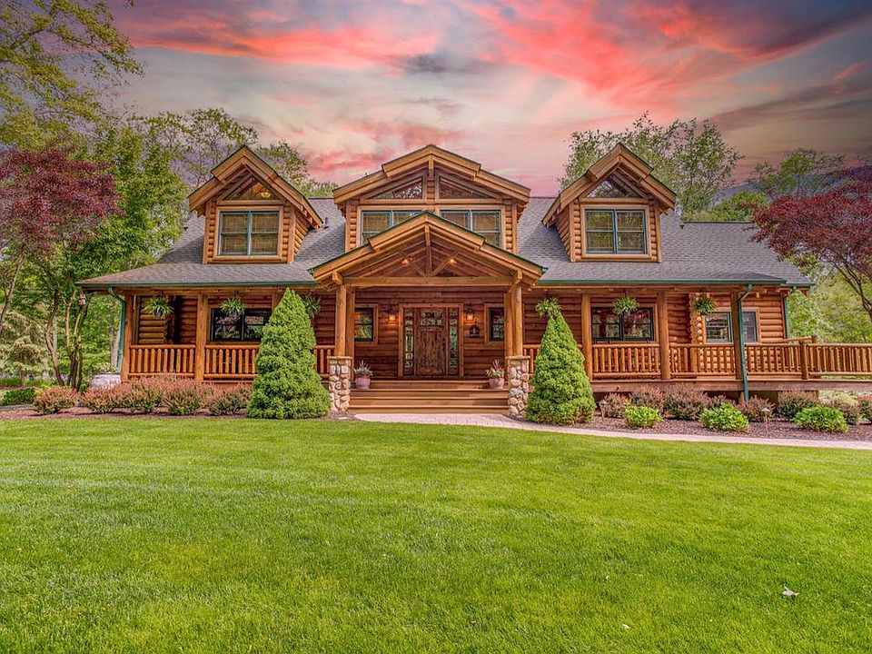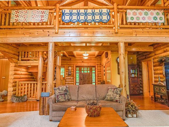 Breathtakingly gorgeous custom log home with an Up North feel within minutes of Ann Arbor, Brighton and Dexter on almost 5 acres. Built by Master Builders in 2003 with the finest of materials. No expense spared in quality. The home has been meticulously maintained. Granite countertops, stainless kitchen appliances, and beautiful wood floors. Master bedroom boasts en-suite bathroom with heated floors, separate shower and tub. The great room is a spectacular sight to see, entering through the foyer, with floor to ceiling fireplace exposure. Upstairs beholds a loft area at the top of the steps with 2 bedrooms and a full bath. Total of 3 beds and 4 baths (2 full, 2 half). Basement is partially finished, with a 1/2 bath, laundry and access to the 2 car garage. New windows, doors, roof, floors, paint, stain and decking in 2009. Outside, there's a 60x7.5' front deck, rear deck has a pavilion, the view from there is just gorgeous. A 24x32' pole barn out back to store your lawn/garden equipment