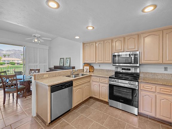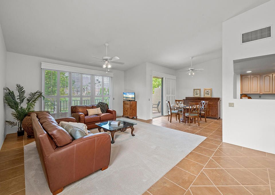 Discover tranquility and elegance in this 3-bedroom, 2-bath fully furnished condominium nestled in the prestigious PGA West community of La Quinta. This upper-level unit offers both privacy and stunning Jack Nicklaus golf course views from its serene patio that's perfect for entertaining or simply unwinding. The open floorplan welcomes you with abundant natural light filtering through shutters throughout the home, creating a warm and inviting atmosphere. Recently refreshed with new paint, carpeting, and stainless-steel appliances, the home blends modern style with practical comfort. The master bedroom includes an ensuite bathroom with dual sinks, a soaking tub/shower, providing a serene retreat. The interior features a large flex room that serves as an ideal home office, bonus room, or gaming area, offering options to suit your lifestyle. New electrical panel, new water heater, and air conditioner installed in June 2021. Additional highlights include an individual laundry room near bedrooms and a private two-car garage. PGA West amenities include access to community pools and is conveniently located near La Quinta's dining, shopping, and outdoor recreational options. Don't miss this incredible opportunity--submit all offers today and make this house your next home or investment!