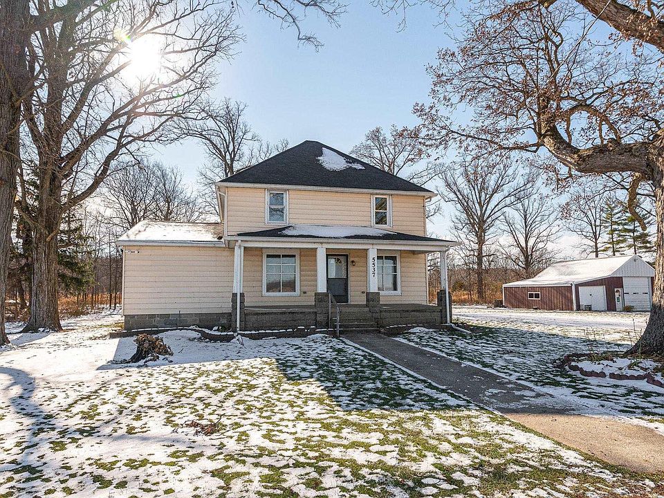 15 acres for your avid outdoorsman! This 2 story farmhouse offers 3 bedrooms, 2 full baths, 1802 sq ft of living, original woodwork, new carpet throughout and custom wood blinds downstairs. Roof approx 5yrs old. 2 barns sitting on 5 acres with fruit trees & berry bushes plus 10 wooded acres behind home with a camp set up in back of woods for hunters, Turkey, deer, squirrel, mushrooms and rabbits galore! Peaceful yet 15 minutes from town.