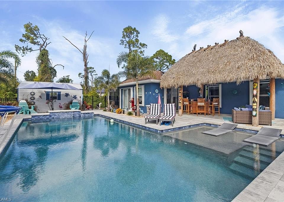 Discover the ultimate Florida lifestyle in the desirable Gulf Cove community! This meticulously upgraded residence offers optional membership to the Property Owners of Gulf Cove (POGC) for a nominal annual fee, granting exclusive access to a private boat ramp, serene park, and an array of social events and clubs. Perfectly positioned just minutes from Englewood Beach and historic Boca Grande, with abundant local shopping and dining at your fingertips, baseball enthusiasts will love the proximity to Atlanta Braves and Tampa Bay Rays Spring Training stadiums, while endless outdoor adventures await—fishing, boating, hiking, shelling, and shark tooth hunting—all within a few miles. Step into luxury with no expense spared in this fully renovated gem, featuring a gourmet kitchen with a stunning waterfall island with new counter tops, and extra deep cabinets that are 28 1/2 instead of the average 24 depth as well as new appliances, pot filler over the stove, new flooring throughout, and fresh paint inside and outside, complemented by a brand-new roof and windows. The opulent primary suite boasts a spa-like bathroom with an extra-long jetted tub, while the custom 18 x 13 tiki hut overlooks a resort-style 18 x 30 pool with an expansive 10 x 10 sun deck as your own private getaway to relax and enjoy. This home also has a NEW SEPTIC TANK AND NEW DRAINFIELD! A private backyard oasis is enhanced by fresh landscaping and exterior paint, complete with a detached storage building and convenient side dog run—every detail has been perfected, and your dream home awaits!