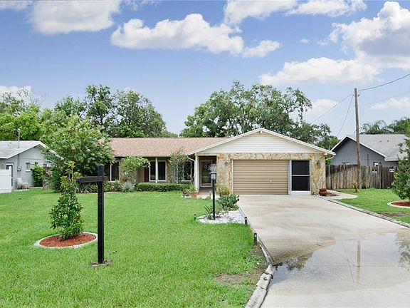 BACK ON THE MARKET, Last Buyer financing fell thru. The coffee's on and the red carpet is rolled out at this MOVE IN READY 3 bedroom/2 bathroom POOL home. The stone façade and leaded accented front door greet you upon arrival. Upon entry, you will catch a hint of fresh interior paint and the low maintenance tile and laminate keeps those high traffic areas looking vibrant and new. The flow of transitions from the living room to dining room to family room are graceful. Let the stainless steel appliances in the kitchen assist you in your culinary delights as you explore creations utilizing the array of counterspace. Both bathrooms have upgraded vanities. Rest assured in these hot, rainy days of summer knowing the AC and roof are only a few years old. The covered lanai is the perfect place to sip your favorite beverage in between laps in your sparking pool. NO HOA means your money stays where it belongs - your pocket! With only being about 10 minutes to the gulf beaches, enjoying sun filled days with the sand between your toes and watching magnificent sunsets can now become more than a dream, but a daily reality! Come see for yourself by scheduling your personal showing today!