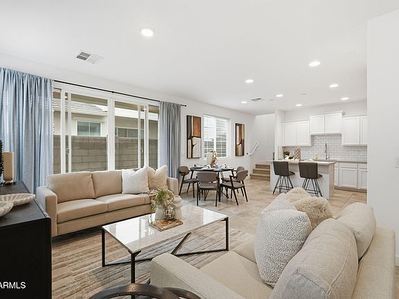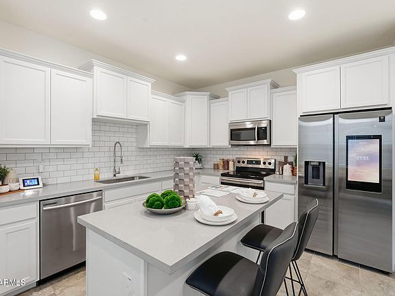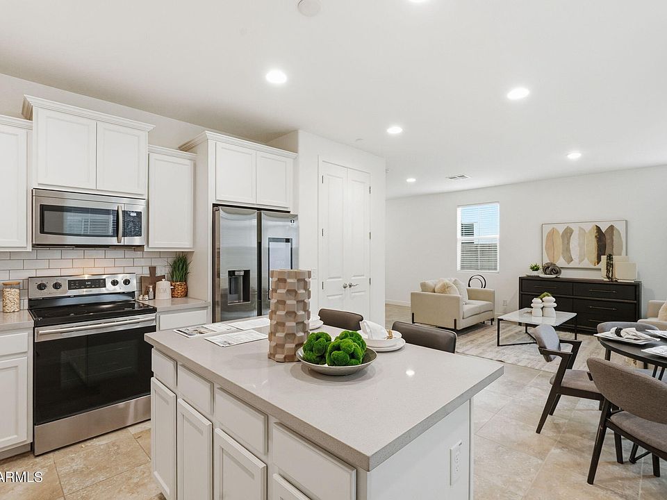Welcome home! Built in 2020, this like-new home in Mesa's sought-after Cadence community is situated on a larger end lot which features 3 beds, 2.5 baths and a 2-car garage. Enjoy the open floor plan, tile flooring downstairs and newly-installed carpet upstairs. Sliding glass doors connect the indoor and outdoor spaces. The fully equipped kitchen features stainless steel appliances, quartz countertops, an island, upgraded white staggered cabinetry, and a large pantry. Bonus loft space could be used as a home office. The large primary bedroom is complete with a very large walk-in closet and a large primary bath with dual sink vanity and large walk in shower. Relax in the backyard & side yard complete with maintenance-free turf. Community features include a community pool, clubhouse & more! a community pool, clubhouse, tennis courts, playgrounds and more!