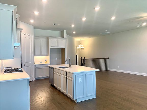 Located in the sought-after Village at The Pointe, this 3-bedroom, 2.5-bath townhome with a private media room, where thoughtful design and modern comfort come together to create the perfect place to call home. From the moment you enter, you'll notice impeccable high-end details, including soaring ceilings, a wrought iron spindle staircase, quartz countertops, custom mudroom cabinetry, and an attached 2-car garage. Inside, a versatile split-level layout is designed for both everyday living and entertaining. Upstairs, enjoy an open-concept living area filled with natural light, a sleek contemporary kitchen with stainless steel appliances, and a welcoming dining space. The spacious primary suite offers a cozy sitting area, spa-inspired ensuite bath, and an oversized walk-in closet. Downstairs, two private secondary bedrooms and a dedicated media room provide the ideal retreat for family or guests. Perfectly situated across from Grandscape with endless dining, shopping, and entertainment options and next to Nebraska Furniture Mart, this home combines style, convenience, and an unbeatable location.