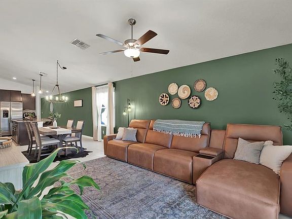 Welcome to this stunning turn-key 2023 single-story home in the desirable Berry Bay community! This beautifully maintained residence showcases modern interior design touches and an open-concept layout that seamlessly connects the kitchen, dining, and family rooms—perfect for entertaining and everyday living. The kitchen features quartz countertops, a tile backsplash, and designer lighting fixtures. The private owner’s suite offers a relaxing retreat with a walk-in closet and ensuite bath, while two additional bedrooms provide space for family or guests. Vinyl privacy fence and backyard with kid-safe play area, rubber mulch, and decorative rock garden. ADT security system with Google Home cameras included! Enjoy resort-style amenities—pool, clubhouse, pickleball and basketball courts, dog park, playground, and walking trails. Low HOA—only $8/month! Convenient to US-301, I-75, Tampa, St. Pete, and Sarasota.