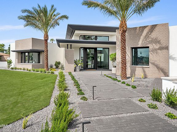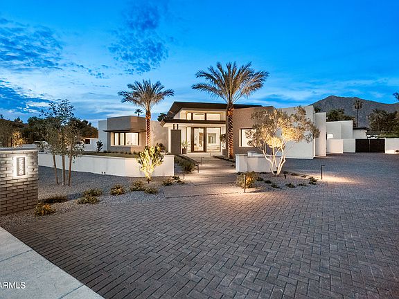 Now available in the heart of Arcadia! This brand-new modern luxury estate by Encanta Homes is a rare opportunity and one of only a few new builds currently available in the neighborhood. Blending elegance with everyday comfort, the home captures warm modern design with iconic Camelback Mountain views as its backdrop. The split floor plan centers around a dramatic Gallery Great Room showcasing a dolomite fireplace wall with custom wood-slat surround, an 85'' Samsung Frame TV, and a temperature-controlled 280-bottle wine display. A separate rec room with wet bar expands the living space, while a disappearing corner wall of glass creates a seamless indoor-outdoor connection. The chef's kitchen stands as the true centerpiece, featuring a 60'' Wolf range, Sub-Zero refrigerator and freezer, additional sink and dishwasher, and expansive storage. The primary retreat offers a private escape with a fireplace, coffee bar, spa-like bath, and dual custom closets.
