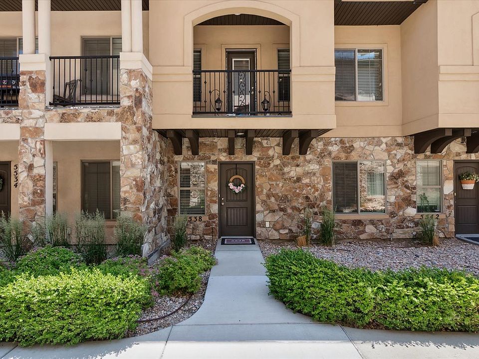 This beautifully upgraded 3-bedroom,2.5 bathroom townhome is located in one of Highland's most desirable areas. Designed with an open floor plan and flooded with natural light, the home offers a perfect blend of modern style and everyday comfort. The main level features a spacious great room complemented with wood beams and a brick wall accent, 9-foot ceilings, and recessed lighting. The kitchen boasts quartz countertops, stainless steel appliances, and abundant cabinet and pantry space. Step outside to a private balcony-ideal for grilling or unwinding. Upstairs, the luxurious primary suite is a true retreat, complete with vaulted ceilings, oversized vanity, and a generous walk-in closet. The lower level offers a versatile home office or flex space to suit your lifestyle needs. Located just five minutes from scenic American Fork Canyon, you'll have easy access to hiking, camping, and outdoor recreation. A large city park with a splash pad, walking trails, and shopping is also within walking distance. Enjoy top-tier community amenities, including a heated outdoor pool and spa, a gazebo with patio grill, a fully equipped gym, a theater room, and an entertainment space with a fireplace and full kitchen. This is maintenance free living at its finest-comfort, convenience, and outdoor adventure all in one unbeatable location.