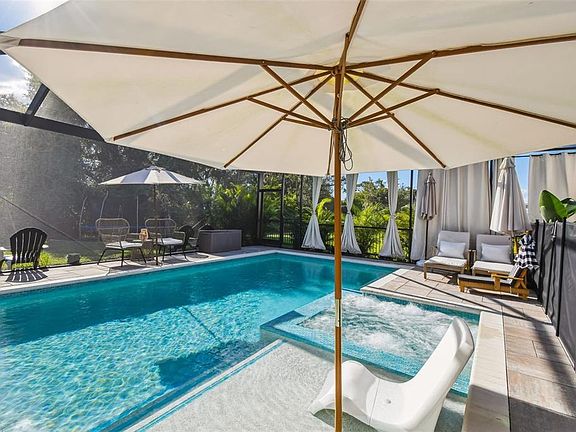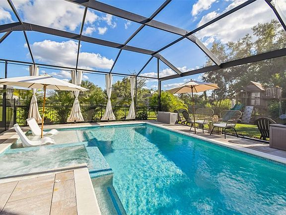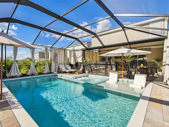Stunning 2023 Move in Ready Home with Custom Pool & Spa in Desirable Waterset Community. Welcome to your private oasis in the heart of Waterset, one of Apollo Beach’s most sought-after master-planned communities. This new home, completed in 2023, boasts a thoughtfully designed layout and a host of luxury upgrades—including a custom-built heated pool, spa, and sun shelf, perfect for year-round enjoyment. Fully automated Pentair Pool System with touchscreen display for easy control of heating & cooling, features, lights, etc. Situated on an oversized, fully fenced lot backing up to a tranquil, tree-lined creek, this home offers privacy and serenity with no backyard neighbors. Step outside to enjoy a spacious screened-in lanai and covered patio, seamlessly extending your living space to the outdoors—ideal for entertaining or relaxing in your own resort-style retreat. Designed for the Florida lifestyle, this open-concept home features luxury vinyl plank flooring throughout the main living areas for durability and easy maintenance. The chef’s kitchen includes solid surface countertops, a large center island, light grey cabinetry, white quartz countertops, and brand-new GE stainless steel appliances, including a refrigerator and washer/dryer. A large walk-in pantry completes the space. Downstairs offers a private guest suite with a full bathroom, while upstairs, you’ll find a spacious loft area—perfect as a second living room, home office, or playroom. The laundry room is conveniently located upstairs and includes a brand-new washer and dryer. The expansive primary suite features a huge walk-in closet and a luxurious en-suite bathroom with a double vanity and oversized walk-in shower. Three additional bedrooms and a full bathroom provide plenty of space for family and guests. Additional highlights include: Covered front porch/lanai, Two-car garage, Large fenced in grassy yard, Direct access to a peaceful creek,and a Screened-in outdoor living area with heated pool and spa. This amazing community is known for its resort-style amenities, multiple pools, splashpad, fitness centers, tennis courts, playgrounds, dog parks, walking trails, lakes, and community concerts/events. You’ll also enjoy easy access to boating, top-rated schools, restauraunts, grocery stores, and more. Don’t miss this opportunity to own a move-in ready pool home in one of Tampa Bay’s most vibrant communities!