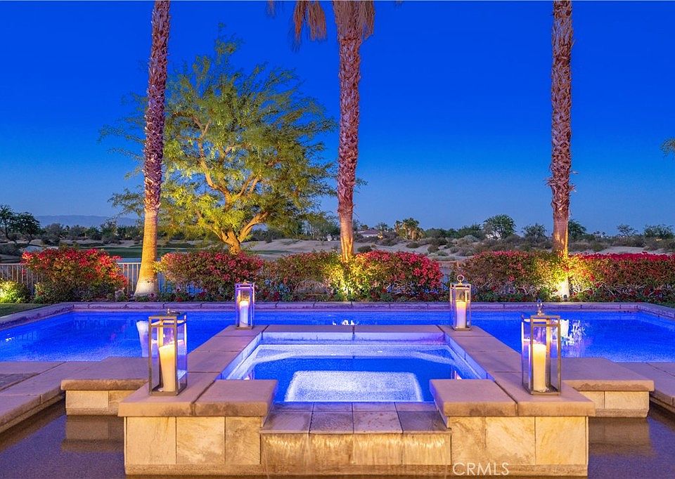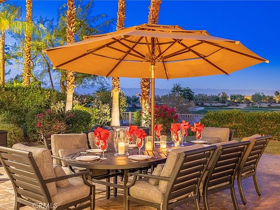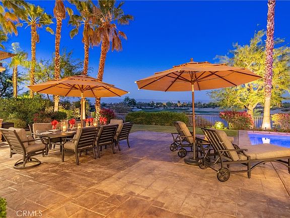 Welcome to St. George Estate, an extraordinary desert escape featured on the Emmy Award winning TV show Staycation (CBS & KCAL 9). Designed for the discerning guest, this luxurious residence blends resort-style living with complete privacy, set against the backdrop of the 17th signature hole of the Greg Norman Course at PGA West. Enjoy breathtaking views of the lake, mountains, and golf course from the comfort of a professionally designed 4,700 sq. ft. interior, where floor-to-ceiling windows, travertine floors, and wood-beamed ceilings create a light-filled, sophisticated ambiance furnished with Restoration Hardware throughout. The estate boasts an oversized saltwater pool and spa with a tanning shelf that also serves as a kiddie pool, surrounded by multiple outdoor lounging and dining areas with seating for 8 10 guests. A built-in BBQ island with bar seating and a custom pergola makes entertaining effortless, while an outdoor fireplace provides the perfect setting for cozy desert evenings. Inside, guests can enjoy a variety of entertainment options including a pool table and foosball, along with thoughtfully curated amenities such as Moulton bath products in every bathroom. The gourmet chef's kitchen is a culinary dream, outfitted with high-end Thermador appliances, dual ovens, a six-burner cooktop with griddle, Sub-Zero refrigerator, wine cooler, and two dishwashers. Whether dining at the ten-seat formal table, gathering in the breakfast nook, or entertaining at the wet bar with mini-fridge and ice maker, every meal becomes a memorable experience. Accommodations include a spacious primary suite featuring a four-poster California King bed, fireplace, seating area, dual cedar walk-in closets, and a spa-inspired bathroom with a soaking tub and walk-in shower. The private casita offers a separate entry, California King bed, Queen sleeper sofa, mini-fridge, en-suite bath, and a private patio. Suite Three includes a California King bed and en-suite bath, while Suite Four features two Queen beds and its own en-suite bath. Each bedroom offers hotel-style comforts with private bathrooms, and a separate powder room is available for guest use. SEE SUPPLEMENTAL ATTACHMENTS FOR RENTAL RATES AND IMPORTANT COMMUNITY FEATURES.