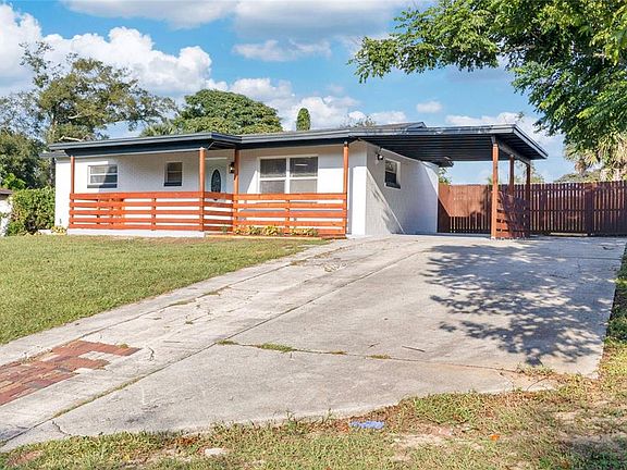 One or more photo(s) has been virtually staged. Welcome to 5539 Huber Drive, located in the Clearview Heights neighborhood in Orlando, known for its close-knit community vibe. From the moment you arrive, you’ll notice this single-story ranch home has been thoughtfully refreshed from the outside curb appeal to the interior! A newly added front porch and covered carport (both finished with durable epoxy floors) welcome you to a freshly painted exterior and tidy new landscaping that make the home feel ready from the moment you pull up. Inside, an open floor plan stretches across 1,425 sq ft and flows naturally for everyday living and easy entertaining: bright living room sightlines spill into the kitchen and dining area, so conversation never skips a beat. The kitchen is built for real-life use — new stainless appliances, granite countertops, subway tile backsplash, and a center island with breakfast bar create a clean, modern heart to the home. New vinyl plank floors and updated fixtures run throughout the living spaces, giving a cohesive, move-in-ready look while the newer AC and a roof only a few years old give practical peace of mind. Three bedrooms, two bathrooms. The primary suite sits privately at the back of the house and includes a large walk-in closet and an en-suite bath with a walk-in shower and quartz countertops. A generously sized laundry/utility closet, plus added closets throughout the home, make storage simple and sensible. Step back in the living room, through the French doors, and you’ll come upon a patio that overlooks a spacious, fully fenced backyard — a perfect canvas for summer barbecues, pets, or a future pool or garden. The Clearview Heights neighborhood makes everyday errands a breeze: grocery stores, drugstores, and casual restaurants are a short drive away, and you'll find a handful of shopping plazas and service businesses nearby for whatever pops up during the week. For commuting and travel, the location gives you fast access to major roads and highways (I-4 and the 417), and downtown Orlando and Orlando International Airport are an easy drive when you need them. For weekend or evening plans, there are neighborhood parks, green spaces, and lakes within reach for outdoor time and exploring. Schedule a private showing today to see all the awesome updates and thoughtful layout come together at 5539 Huber Drive.