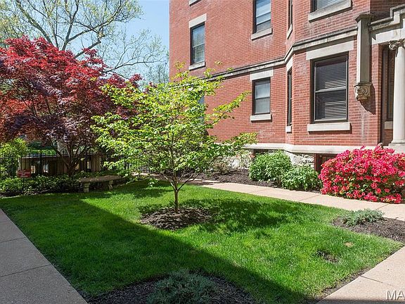 ABSOLUTELY STUNNING 1st Floor condo in the most desirable building on Waterman Blvd! This unique condo offers a beautiful, large stone balcony, & a remarkable courtyard view of exquisite flowering trees, countless lush perennials & tasteful outdoor lighting. Inside, you will be amazed w/the exquisite warmth & glow of immense windows offering beauty & natural light. Plus gleaming hardwood floors, leaded glass & bay windows, & crown molding. Love the spacious living room w/fireplace, formal dining room & large kitchen w/enormous amount of cabinetry. Two sizeable bedrooms, updated full bath & one NEW half-bath. Plus a spacious office. ALL appliances included. One assigned gated parking space & two basement storage lockers. In the historic DeBaiviere Neighborhood - steps from neighborhood pool, Forest Park, & minutes from Washington University, & hospitals. Plus, qualifies for WashU & BJC “Live Near Your Work Program” providing up to $12.5k in assistance! Location: Corner Location, End Unit, Ground Level