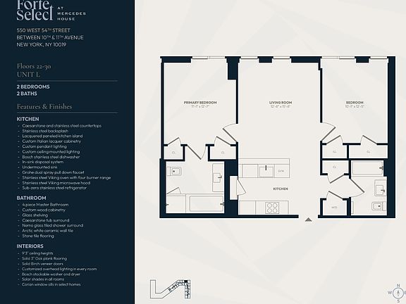 Forte Select at Mercedes House is a block of 162 units rental units with condo finishes. Spanning exclusively from the 22nd-32nd floor, Forte Select offers unparalleled views of New York City, and unit finishes you won't find anywhere else. As a ground-breaking building designed by internationally renowned architect Enrique Norten, Forte Select offers residents a wealth of upgrades including Viking stoves, Sub-Zero refrigerators, five-piece bathrooms with soaking tubs, designer corridors, and more expansive layout options. These units are something you won't want to miss.