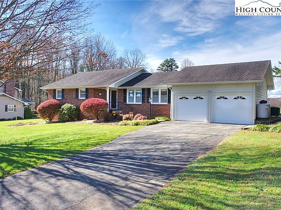 Welcome home to this classic 1977 brick ranch, on a flat, .55-acre lot with mountain views. Enter from a the home from the covered stoop into a welcoming living area. Straight ahead, you’ll find an inviting eat-in kitchen and a spacious living room with a gas brick fireplace, wood floors, and plenty of windows flooding the room with natural light. Off the living area you'll find a wood porch and brick patio overlooking the large grass backyard. The kitchen is a wonderful gathering area with its oversized island, glass electric cooktop, and natural wood cabinets.