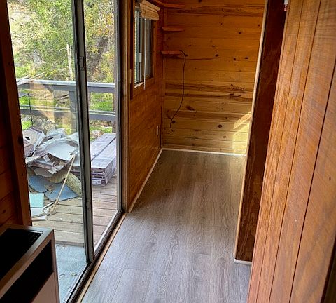 Feels like you are living in a tree house! Backs to open space, with a running creek and deck to watch the wild life. Fully fenced yard for your furry friend. Close to downtown