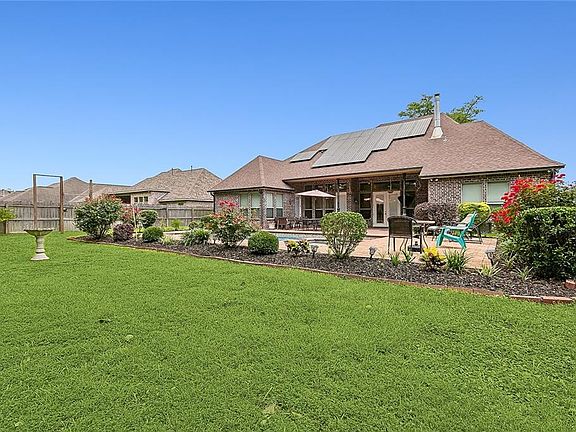 Beautiful 4BD/3.5BA home with too many upgrades to count. NEW fortified roof installed January 2025. Appliances approx. 1 year old, large yard with in-ground pool with hot tub and brick French Quarter style patio, upstairs loft with private bathroom, great for large family gatherings, formal dining area. Great school district. Open floor plan, 12-foot ceilings in living area, 8-foot doors throughout; beautiful 3cm granite in kitchen and master bath, custom soft-close cabinets. Walk-in master closet, dual jet shower with his/her vanities in master bath, home office could be converted to a 5th bedroom, New HVAC on bedroom side, SPRAY FOAM INSULATION throughout walk-in attic and connecting walls.