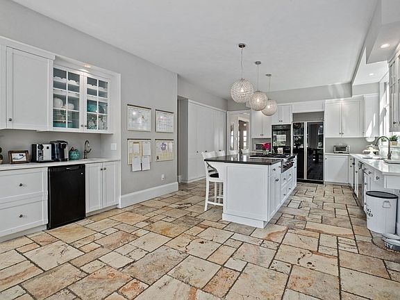 WATER VIEWS & VIEWS OF THE BOSTON SKY LINE all from one of the most stunning and unique private properties along sought after Jerusalem Road. Located an easy walk from Black Rock Beach, this spectacular 7700 sq. ft. home features 6+ spacious bedrooms and 7 beautiful bathrooms. The real wow factor is the large octagon shaped family room with soaring 30 foot ceilings, over-sized stone gas fireplace, full-size bar equipped with a sink, fridge, ice maker & dishwasher. Beyond the living room are huge water views from the deck that wraps around the entire back of the house. Too many features and updates to list, including new master bath, all new windows and doors on 2nd & 3rd floor, updated kitchen and bathrooms, game room, finished basement, 3 car heated garage, outdoor shower, new generator, new AC, and so much more. 3D virtual tour & floor plans attached.
