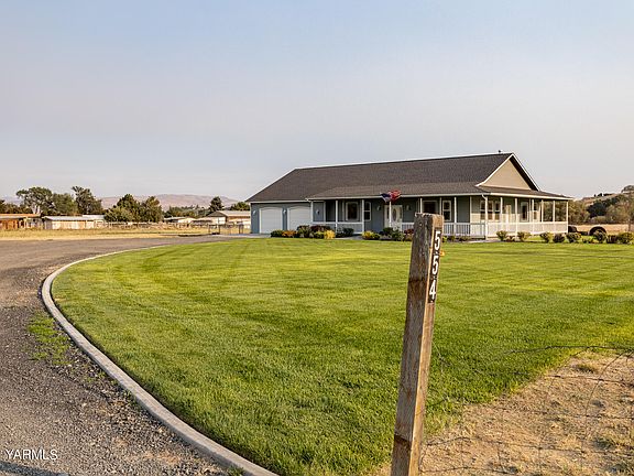 Amazing Wenas Selah Beautiful Country Home close to town & freeway with Views, Privacy, Space for Shop, Animals, Toys.Open concept 2440sq ft 3 bed 2 bath, located at the end of a peaceful private drive on level 6.13 acres. Features include great room with vaulted ceilings and river rock gas fireplace, kitchen with pantry and custom cabinetry. Large master bedroom with walk-in closet and a second closet, and master bath has jetted tub and double showers with heated floors. Large bedrooms with nice sized closets, plus a bonus room/den/office also. Outside enjoy the covered wrap around porch, stamped patio, fire pit, large children's play area, and privacy trees. Private well and automatic underground sprinkler system for the yard. Some updates include: new roof in Nov 2020, exterior paint