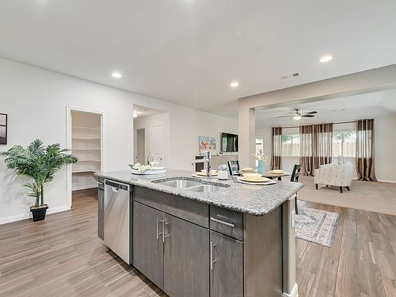 Presenting Bloomfield's two story Redbud 5 bedroom, 3 bath delivers an open floor with split bedrooms, wood-look tile flooring, a primary bedroom with a spacious ensuite bathroom with separate shower, dual sinks, and walk-in closet; modern gourmet kitchen with custom backsplash tile. The second floor hosts a game room and 5th bedroom and bathroom that could serve as a second suite living space. The covered rear patio puts a spotlight on the beautiful greenbelt treelined lot along with its complimentary artificial turf to enjoy the outdoors all year long. This house and ampule space is ready for your preferred design and style to make it your home.