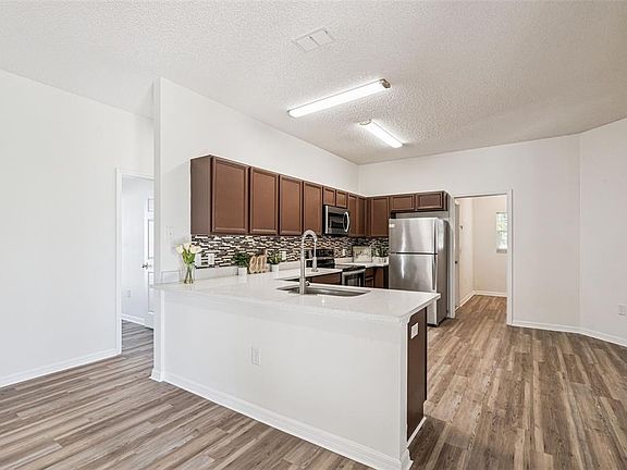 One or more photo(s) has been virtually staged. Stylish. Spacious. Fully Refreshed. This beautifully renovated 4-bedroom, 2-bathroom home at 554 Nogales Court combines modern updates with a layout designed for comfort and functionality. With fresh interior and exterior paint, new flooring throughout, and a brand-new microwave, the home feels crisp, bright, and move-in ready. Major improvements have already been taken care of — the roof was replaced in January 2024, and both the indoor and outdoor AC units were replaced in June 2023, giving peace of mind for years to come. Step through the front door into an inviting living and dining area that sets the stage for gatherings or quiet evenings in. Toward the back of the home, the kitchen opens to a generous second living area — the perfect setup for connecting with guests while cooking or relaxing. The kitchen features newer appliances, ample cabinetry, and a functional layout that flows easily into the living space. The spacious primary suite is a standout, offering a huge walk-in closet, a second built-in closet, and a private ensuite bathroom with dual sinks, a soaking tub, separate shower, and enclosed toilet. The popular split-bedroom floor plan provides privacy, with three additional bedrooms and a full bathroom located on the opposite side of the home. An oversized laundry room with built-in shelving adds extra convenience, keeping your essentials organized and out of sight. Step outside to a large covered patio, perfect for outdoor dining, lounging, or simply enjoying the Florida weather year-round. Located in the established Poinciana community, residents enjoy access to fantastic amenities, including a recreation center with a swimming pool, fitness center, and playground. The affordable monthly HOA dues also include cable and Wi-Fi, adding incredible value to everyday living. With its extensive updates, flexible floor plan, and move-in ready condition, this property offers an appealing blend of comfort and practicality — all in a welcoming Central Florida setting.