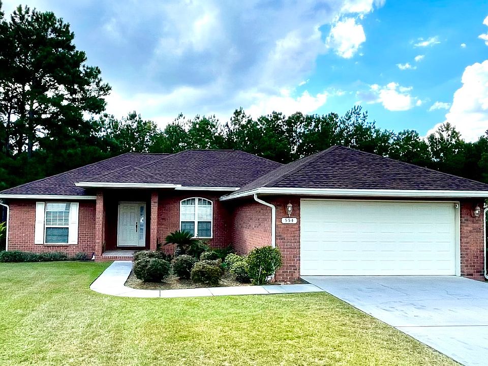 MOVE IN READY & SELLER IS MOTIVATED! Discover this beautifully maintained 3 bedroom, 2 bathroom brick home just minutes from town! This home is over 1700 sq ft, and it had a new roof installed in 2024. It features a large great room, split floor plan, with a spacious master suite offering an en suite, and a two car garage. Enjoy meals at the cozy breakfast nook or entertain guests in the dining room. The bright Florida room provides additional living space and a perfect view of the back yard. Situated on a beautifully landscaped lot, this property includes mature fruit trees- orange, persimmon, and fig, plus a vibrant garden with flowering plants and greenery. This homes blends comfort, charm, and convenience - ideal for anyone looking for peaceful living close to town amenities. Schedule your showing today!!