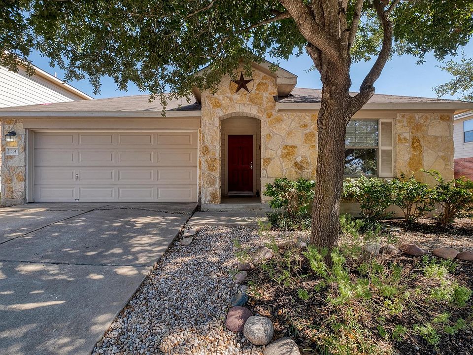 There’s something instantly likable about this Stonefield home. Maybe it’s the way the front yard feels fresh and finished, with its mix of native plants and mature trees, or how the exterior gives off a quiet confidence that’s rare in a neighborhood this close to everything. Inside, the tone stays the same; bright, cared-for, and easy to love. Tile and laminate wood floors stretch through the main areas, pulling light from every direction. The kitchen brings the right amount of character with crisp white cabinets, matte black hardware, granite countertops, and new lighting. The primary suite sits at the back of the home, offering calm and space, with an ensuite featuring dual vanities and a walk-in shower. Each room carries a sense of purpose and comfort, finished with fresh paint and perfectly chosen details that just work. Out back, a brand-new covered composite deck steals the show. It’s a $10K upgrade built for slow mornings and long evenings, overlooking a greenbelt with no neighbors in sight. The oversized yard blends fresh landscaping with low-maintenance xeriscaping; smart, good-looking, and ready for Texas weather. Living in Stonefield means more than a great house. You’ll have access to a community pool, trails that wind through quiet streets, and easy routes into both downtown Buda and Austin. This home doesn’t need anything. It’s ready to be lived in and loved from day one!
