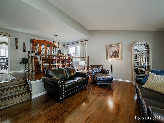 Quality features incl stunning newer KIT & Baths, gleaming HW floors, freshly painted interior & lots of recessed lighting. Large open foyer greets your guests. Vaulted ceiling in LR & DR offers open feel. Stunning & bright KIT boasting granite counters, glass tile backsplash, pull out shelves, soft close doors, under cabinet & recessed lighting & bay window plus SS appls with a double builtin oven, 5 burner gas cooktop. Home offers Large BRs including a lovely MBR suite with 2 closets & private bath. FR with Sliding glass door to patio area, fireplace and additional cabinetry. Totally remodeled powder room. The lower level rec room w/pool table included was recently updated & provides addt space. Relax in the backyard with mature landscaping. Need a long side driveway for extra parking? Newer windows & doors, tear off roof, gutters, CAC. Close proximity to top schools, park, golf course, etc makes this a dream home for today's buyer.