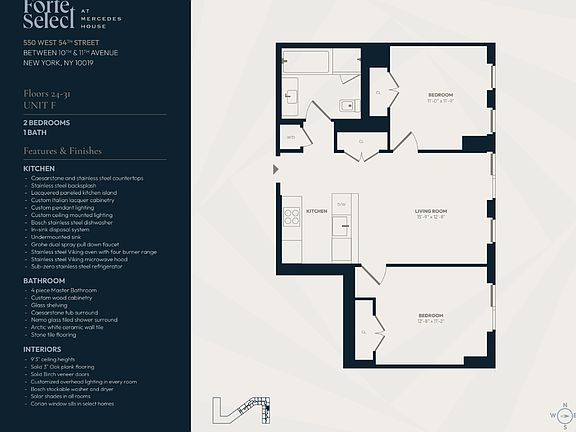 Forte Select at Mercedes House is a block of 162 units rental units with condo finishes. Spanning exclusively from the 22nd-32nd floor, Forte Select offers unparalleled views of New York City, and unit finishes you won't find anywhere else. As a ground-breaking building designed by internationally renowned architect Enrique Norten, Forte Select offers residents a wealth of upgrades including Viking stoves, Sub-Zero refrigerators, five-piece bathrooms with soaking tubs, designer corridors, and more expansive layout options. These units are something you won't want to miss.