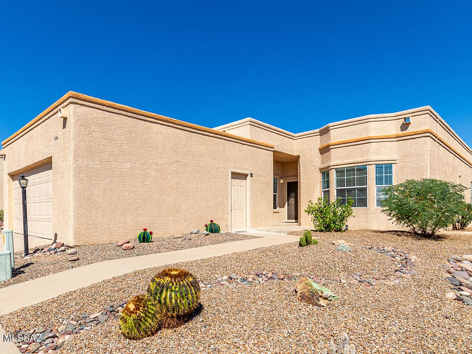 The perfect blend of comfort and lifestyle. Enjoy the best of both worlds--peaceful living on two spacious lots plus the benefits of a vibrant community with its own recreation center, pool, spa, fitness room, and year-round activities. Step inside to a thoughtfully designed 2-bedroom, 2-bath home with no wasted space and plenty of natural light. The large kitchen is a chef's delight, featuring stainless steel appliances including a gas range and a generous dining nook.The primary suite offers a relaxing retreat with a bay window, walk-in closet with built-ins, and a private bath. Guests will feel right at home in the second bedroom and bath. The attached garage provides room for your vehicles and extra storage, with guest parking conveniently nearby. Enjoy your morning coffee under the shaded pergola with a peek-a-boo mountain view! Best of all--no GVR (though membership is available if desired). The quiet location tucked on a low-traffic street this home is perfect! Welcome Home.