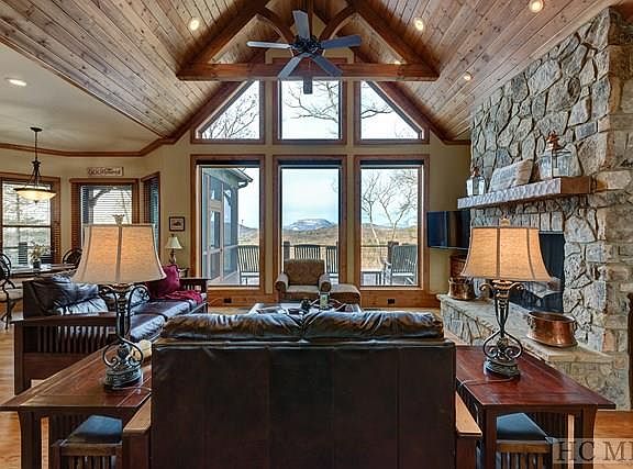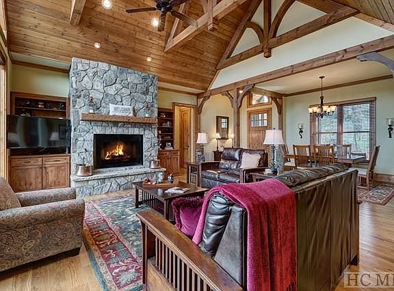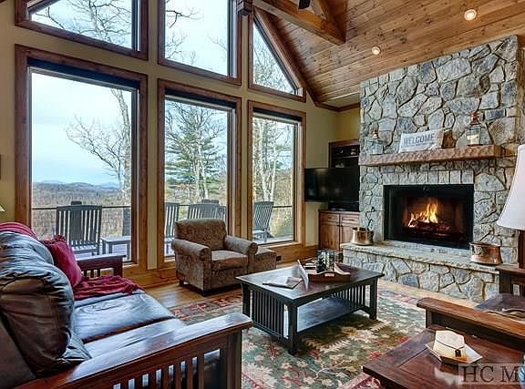 One of the most AWESOME WOW features you will ever see! You can't help but say WOW the minute you walk in the front door & see the breathtaking view of Whiteside Mtn silhouetted against a Carolina sky flanked by views of Little Terrapin Mtn, Yellow Mtn & several others! Overlooking national forest lands - your views are unobstructed & awe inspiring! This is an absolutely charming, well constructed timber frame home by Triad Builders in the quiet, exclusive Whitewater Ridge community. The Great Rm boasts wood floors, cathedral tongue & groove ceiling, huge stone wood burning fireplace w/gas starter, open dining area, gourmet kitchen w/high-end KitchenAid appliances, Alder cabinets incl pull-out spice cabinets, granite countertops, SS appliances. Other than the bonus bunk room upstairs - everything else is all on one level w/a split bedrm plan. Open deck & a screened porch has a new gas log fireplace. Attached 2 car garage w/ample rm for a workshop table &/or extra storage shelves. Wired for generator, tankless hot water heater, 3-zoned a.c./heat, dual fuel system, tinted windows, remote operated blinds, & whole house dehumidifier. This is truly a move-in condition/turn-key home & the furniture is negotiable w/the sale!