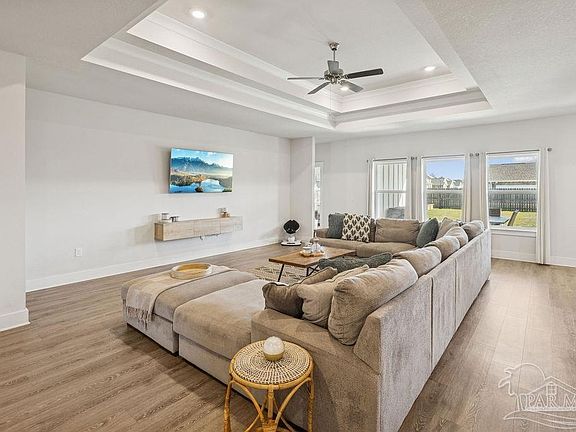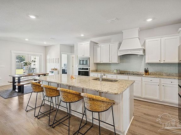 Welcome home to the highly sought-after McKenzie plan, offering 5 bedrooms, 3 full bathrooms, and 3,141 sq ft of spacious, modern living in Robinson Estates, one of Pace’s premier communities. Situated on a .386-acre corner lot, this home features thoughtful upgrades, stylish finishes, and a functional layout designed for both everyday living and entertaining. Step inside to an open-concept living area with custom built-ins in pantry, a floating entertainment center, and durable LVP flooring throughout the main spaces. The gourmet kitchen includes a large granite island, stainless-steel appliances, tile backsplash, and ample cabinet space. The primary suite offers generous space and an en-suite bath with double vanities, soaking tub, separate shower, and a large walk-in closet. Four additional bedrooms + 2 additional full baths ensure comfort for family, guests, or a dedicated office/flex space. Outside, enjoy a fully fenced backyard, gutters with soffit lighting, and a 2-car garage with extra storage located above garage doors. Located in the popular Robinson Estates community, residents have access to a neighborhood pool & pavilion area!