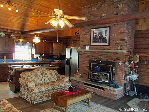 Gorgeous log home w 2 car garage & 24 x 48 pole barn. Outdoor & nature lover's paradise on 17.9 acres teaming w wildlife! Deer & turkey are plentiful. Magnificent views! Open floor plan w vaulted ceiling & loft (possible 3rd bdrm).Great room has a Beautiful fireplace w pellet insert & oak tongue & groove flooring. Open kitchen with island. Gorgeous dining room w fireplace. Full walk out 12 course basement w new full bath. 3 yr old roof w 30 yr architectural shingles. Most windows 2 to4 yrs new, newer boiler w 5 zones, new water cond & more! Home is warm & inviting & the views are beautiful!