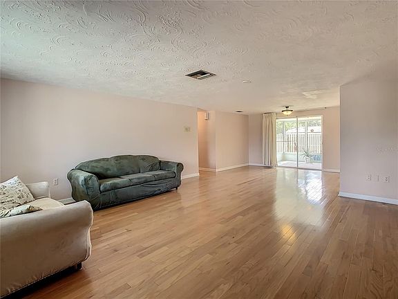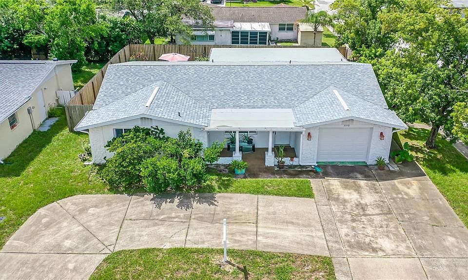 SPACIOUS, CLEAN, WELL MAINTAINED 3 BEDROOM, 2 BATHROOM, WITH A FAMILY ROOM, LIVING ROOM, DINING ROOM AND A SEPERATE BREAKFAST AREA, AND GREAT SIZE BEDROOMS! NO HOA fees or flood insurance required!! SELLER HAS ALREADY BOUGHT A NEW PLACE, SO SELLER IS MOTIVATED TO SELL! This property has a lot to offer from a fully fenced in yard with a shed, new timberline 3dimensional roof 8/2022, A/C & Heat 2015, double pane windows, steel entry door and garage side door in 2013, exterior was painted in 2019, Hardwood floors throughout except in bedrooms 2, and 3 which are laminate. The master bedroom has 2 closets (1 is a cedar closet) and a master bathroom with a walk-in shower. The home has a lot of storage inside, and the 1.5 size garage has built in cabinets throughout, so there is a lot of storage space throughout. The kitchen has been renovated with wood cabinets, and family room has built ins. A circulator driveway, front porch, and mature landscaping throughout front and backyard are just some special features that make this a charming property. The landscaped backyard is fully fenced in with an outside Patio, and also has a covered, screened in Lanai to enjoy the Florida weather. A Convenient location to Tarpon Springs, Palm Harbor, New Port Richey, Trinity, Clearwater, the beaches, shopping, restaurants, medical, entertainment, parks, airports, and only 3 blocks from the new build public library.