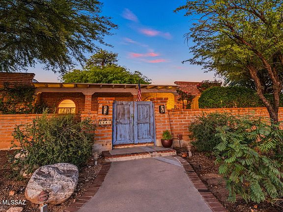 Quintessential territorial-style home.exudes timeless charm & unique authentic character, set on over an acre cul-de-sac lot in Tucson's desirable foothills. Warm & inviting family room w/wood plank ceiling, classic fireplace & windows framing the Catalina Mountains. Elegant living room off the dining area, perfect for conversation, reading or simply enjoying another perspective of the mountain views. Tranquil primary suite with its own fireplace, patio doors leading to a secluded deck and a soothing spa-like bath featuring a jetted tub. Flowing split bedroom floor plan designed for both comfort & privacy. Spacious laundry room has a built-in sink & work space. Backyard oasis ideal for relaxation or entertaining w/sweeping Catalina Mountain vistas. Multiple outdoor living areas to enjoy Tucson's legendary sunsets and desert serenity. This home blends charm, privacy and views in one of Tucson's most coveted locations.
