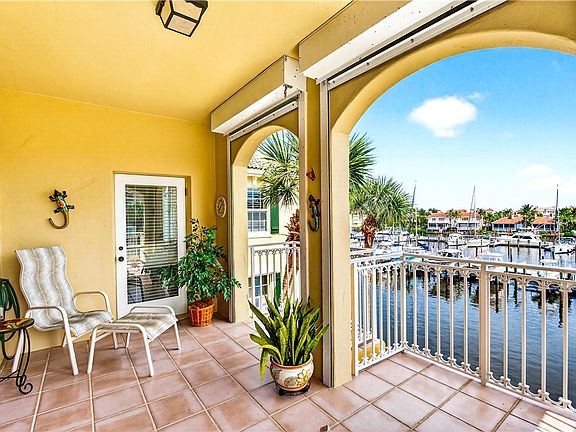 Rarely available three-bedroom penthouse with stunning views of the Marina to the east and golf to the west. Upgrades include tankless hot water system, with whole house water purification, impact glass, shutters and granite kitchen countertops. The condo was re-piped in 2023 and exterior painted in 2024. Steps to elevator and community pool. Discounted Grand Harbor Club membership available.