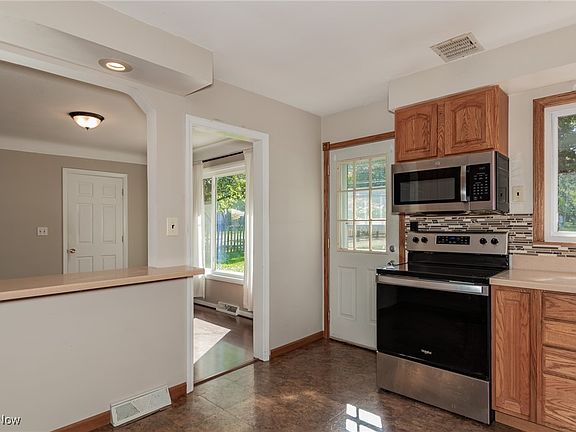 Beautiful brick 3 bedroom, 2 full bath ranch has an attached garage and an open floor plan. The eat-in kitchen includes all appliances. Updates include newer roof (7/25), newer furnace and central air (12/22), and added insulation 8 yrs ago. Other improvements include bathroom updates, newer window in dining room, concrete driveway and walk connecting the front and back patios. Either patio is prefect for enjoying the spacious yard with mature trees. Two large storage sheds provide lots of extra room for lawn and snow equipment. Hurry to see this awesome updated ranch! Seller is licensed real estate agent.