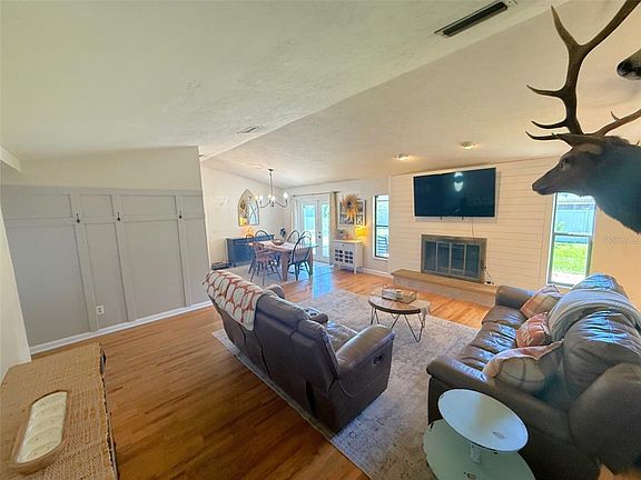 Move-in ready 3/2/2 in charming and desirable Oakhurst subdivision. Located on a dead-end road with little traffic. Home feature an inviting open floor plan, living room has wood floors, wainscoting accent wall, cathedral ceiling and a wood burning fireplace. Kitchen has ample wood cabinet, stainless steel appliances, tray ceiling and tile floor. Dining room with cathedral ceiling, tile floors and French doors leading out to large screened in rear porch. Large master bedroom with walk-in closet, updated master bath with walk-in tile shower. Good sized second and third bedrooms and guest bath with tile enclosed bath tub. two car garage with laundry room area. Large rear yard with privacy. All this and close to Florida Greenway with walking/riding trail and playground. tons of shopping and restaurants in close proximity.
