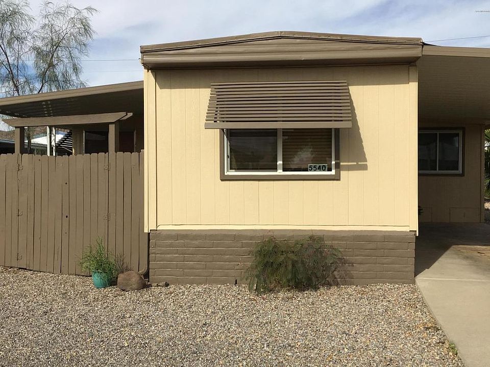 Outstanding 2 bedroom, 2 bath home completely renovated inside and out within the past 10 years. Laminate flooring throughout. Pocket doors to give added wall space. Large AZ room. Another add-on room with plenty of windows good for arts and crafts or computer room. Storage room. Brand new dishwasher. Garbage disposal and water filtration system at kitchen sink. Washer/dryer. Small covered patio. Covered parking. Both AC and swamp cooler. Brick skirting. Fenced yard with doggie door. Beautiful mountain views. Located in Tucson Estates. Amenities include gorgeous 18 hole golf course; two pools; spa; work-out room; tennis courts plus numerous clubs and activities. Hiking trails in Tucson Mountain Park adjacent to Tucson Estates. 20 minutes to downtown Tucson. Must see!